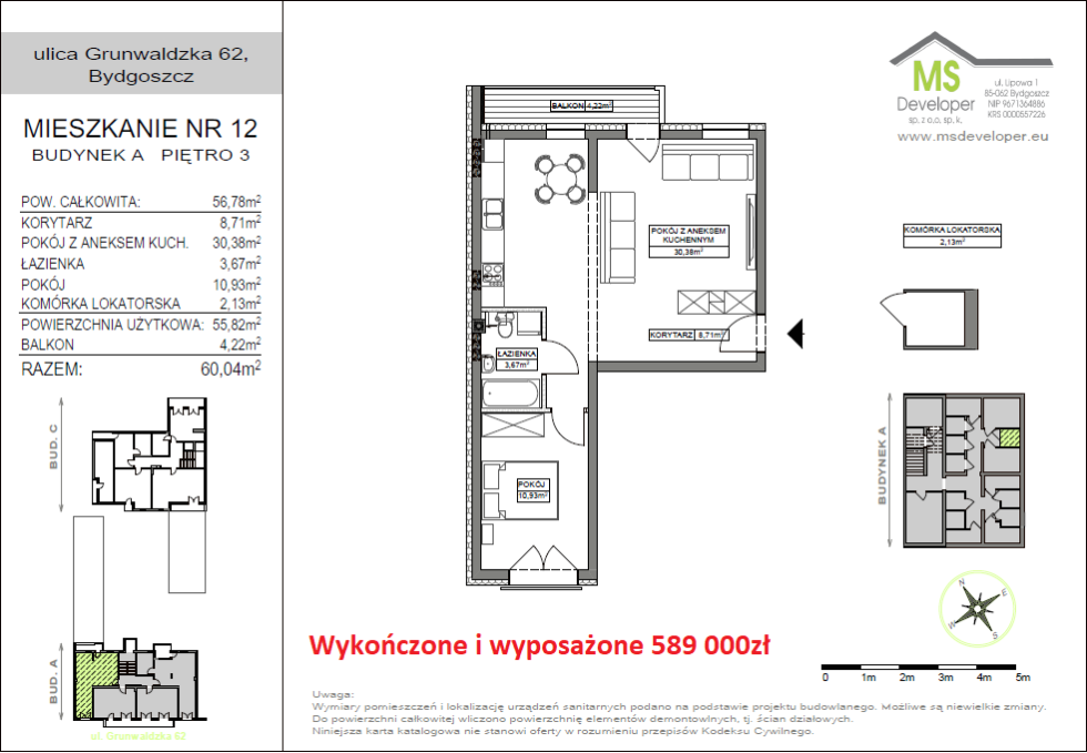 Grunwaldzka 62, 3 pokoje z aneksem, A12 57m2