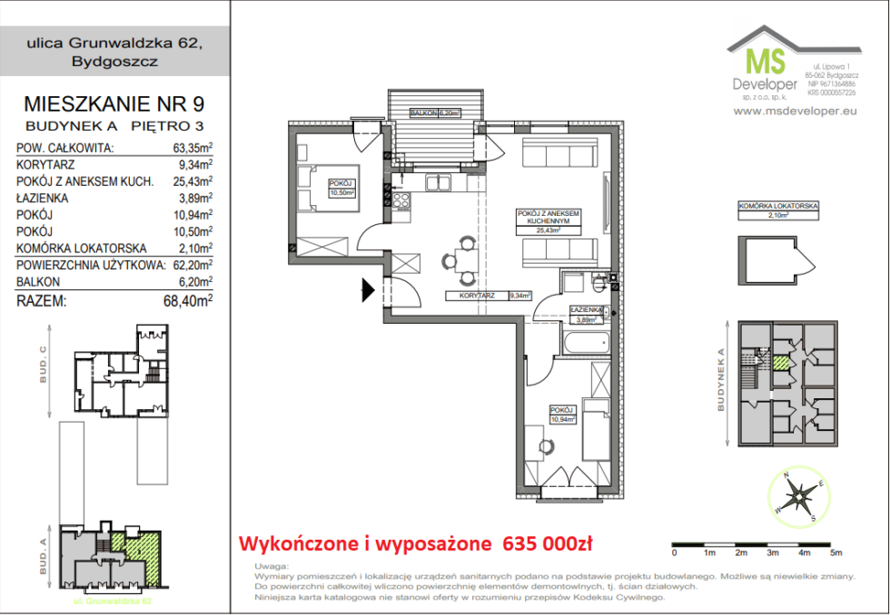 Grunwaldzka 62, 3 pokoje z aneksem kuchennym, A9 63m2